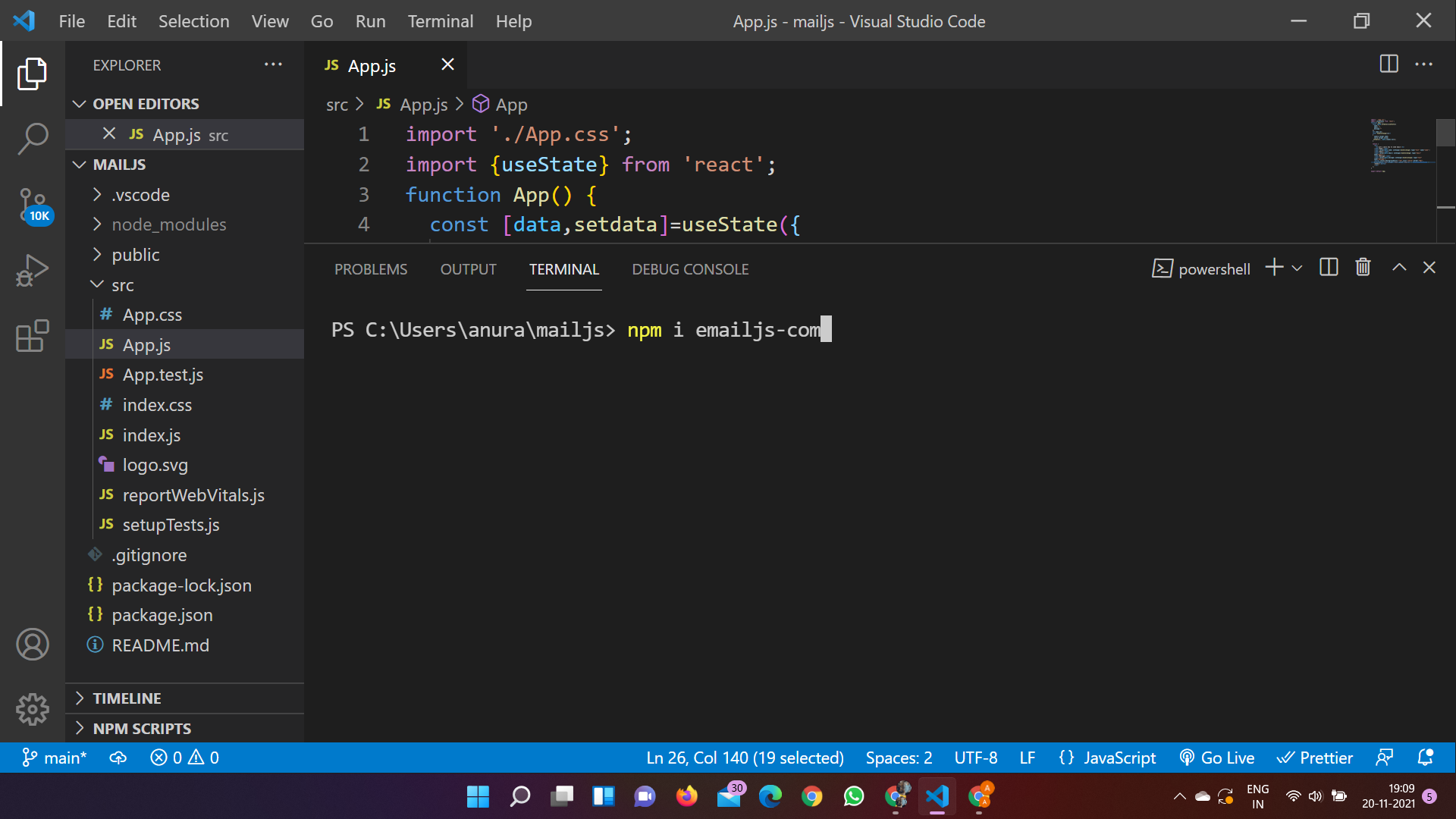 - Install the emailjs dependency.